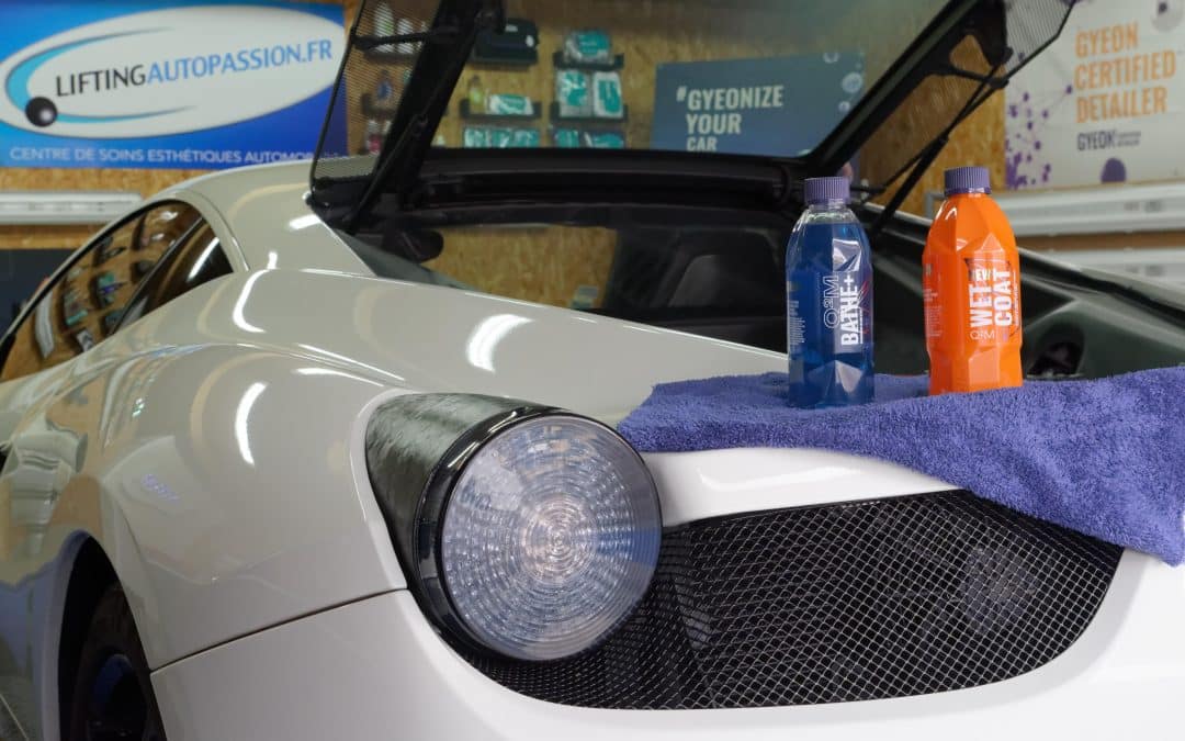 Nettoyage voiture en mode detailing dans notre centre esthétique automobile proche de Clermont-Ferrand, pour la mise en vente de cette Ferrari 458 de 2011, une prestation réalisée exclusivement grâce à la gamme Gyeon, pour un rendu brillant, efficace et durable.
