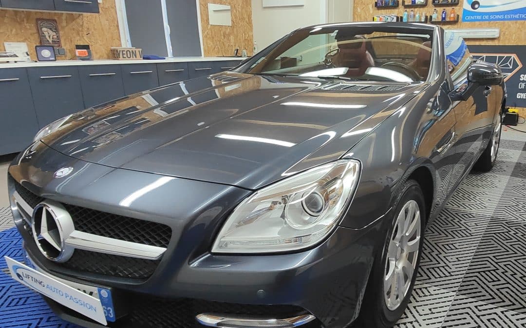Detailing complet et haut de gamme dans notre centre esthétique automobile proche de Clermont-Ferrand pour cette Mercedes SLK 200
