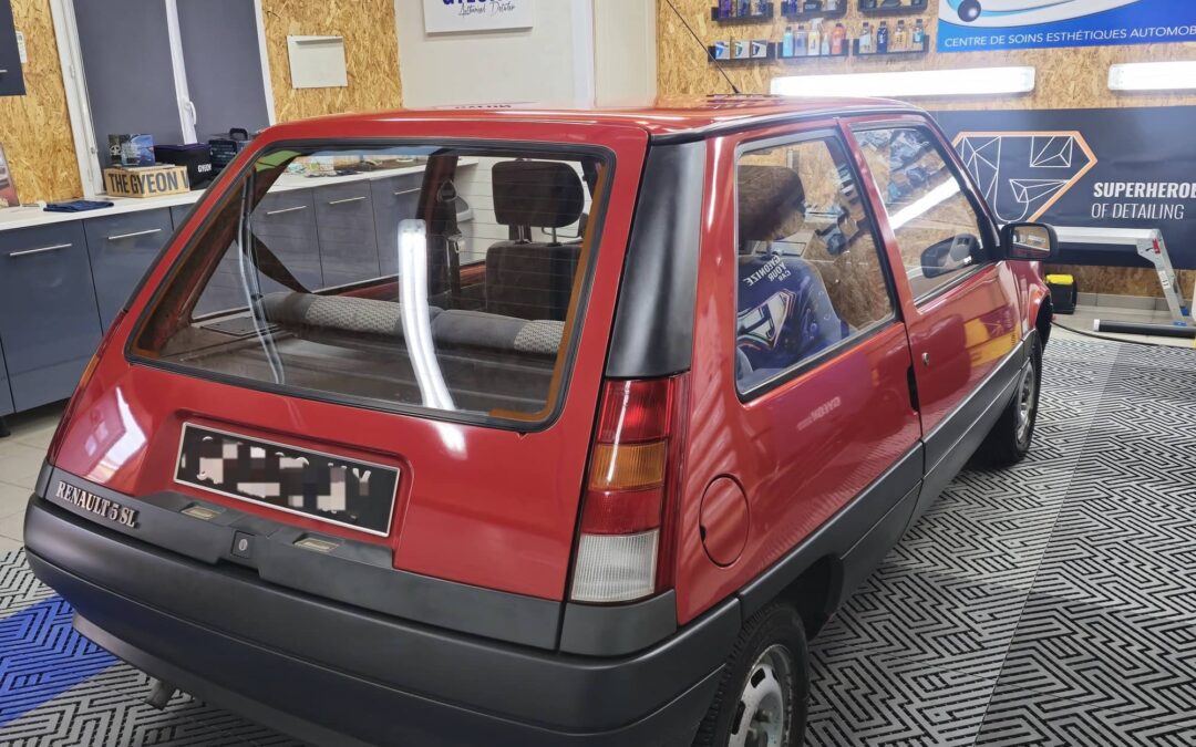 Detailing complet et haut de gamme avec application de protection céramique, pour cette Renault 5 sl, dans notre centre esthétique automobile proche de Clermont-Ferrand.